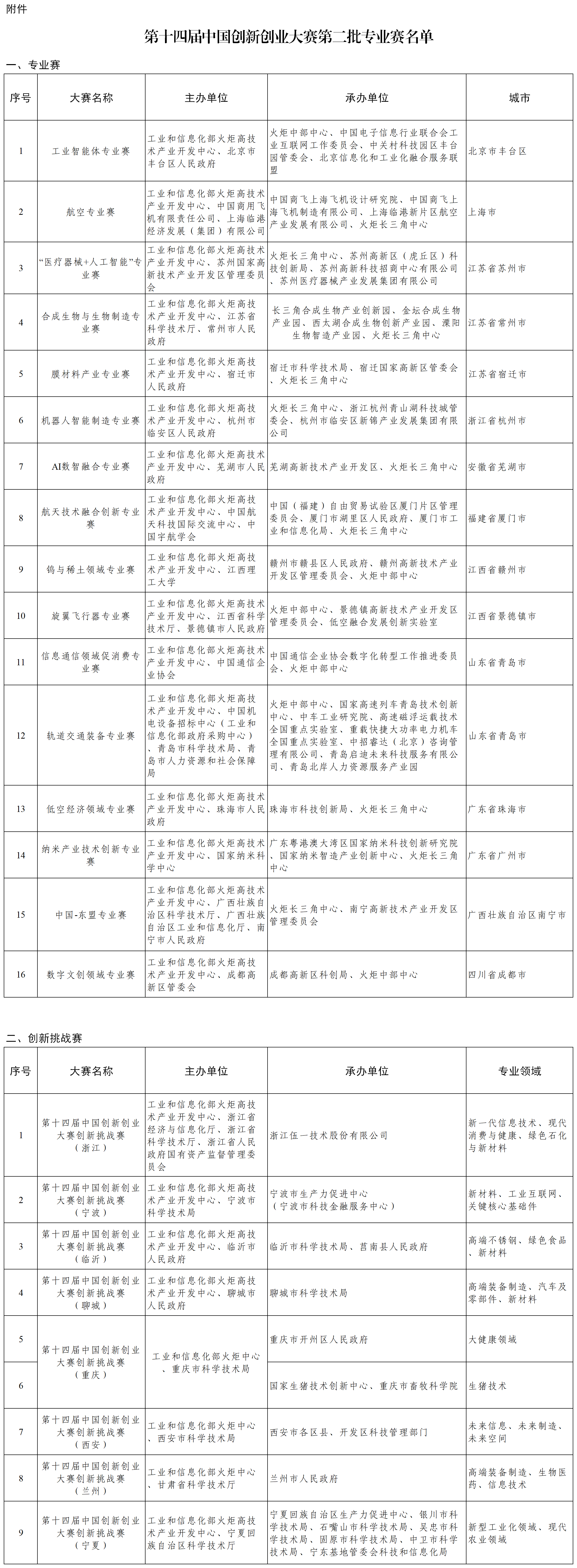 附件:第十四屆中國創(chuàng)新創(chuàng)業(yè)大賽第二批專業(yè)賽名單